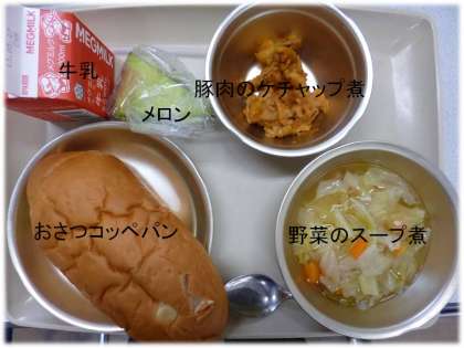 「おさつコッペパン」「野菜のスープ煮」「豚肉のケチャップ煮」