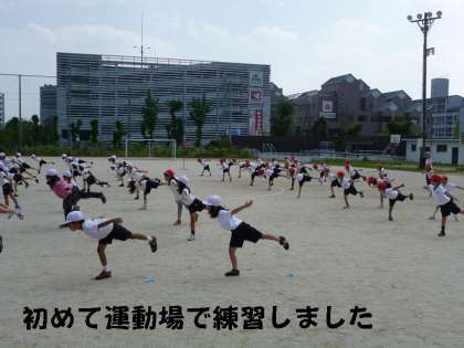 5時間目の暑いときでしたが,1,2年合同体育で,初めて運動場で練習しました。