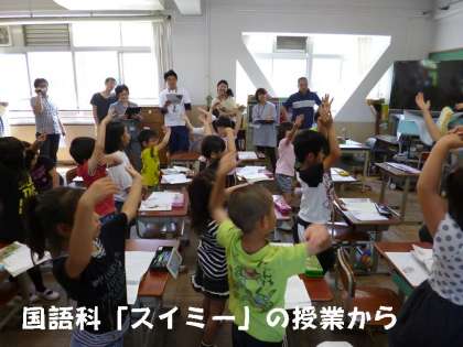 今日は,国語科の「スイミー」の授業を工夫(授業改善)し,子どもたちが意欲的に参加できる授業を構築し研修しました。