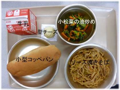「小型コッペパン」「ソース焼きそば」「小松菜の油炒め」