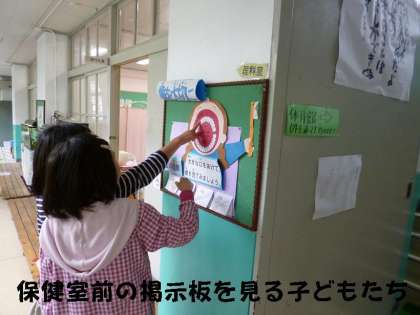 保健室前の掲示物も6月の虫歯予防週間に合わせて変わりました。