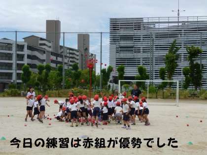 そして,紅白玉入れの練習がはじまりました。盛り上がり最高潮です。