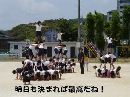 運動会の総仕上げの練習は,すべて終わりました。メイン種目の「組体操」(フィナーレ)もきれいにきまりました。