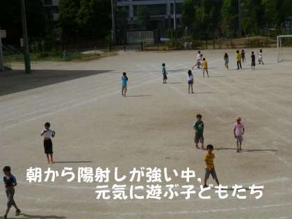 朝休みから,汗いっぱいかいて運動場で遊んでします。