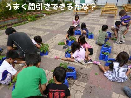 1年のページ 「あさがお」の間引きをしました