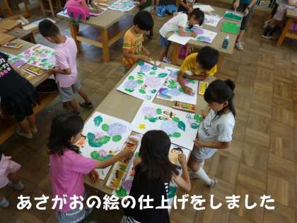 運動会前から取り組んでいた,「はり絵の技法を使ったあさがおの絵」が仕上げの段階に入りました。