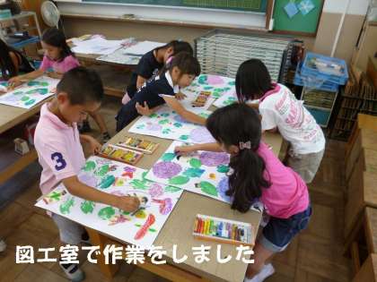 今日は図工室で,パスや絵の具等を使っての活動でした。時間をかけただけあって,どの絵も力作ぞろいです。