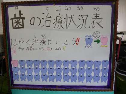 保健室前に,保健委員会が作成した「歯の治療状況表」が今年もはり出されました。