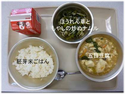 「胚芽米ごはん」「五目豆腐」