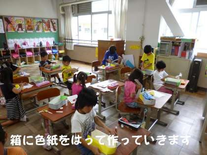 図工の工作で「大好きなたからもの」を作っています。箱を利用してきれいに飾りつけたり,仕切りをつけたり・・・。いろいろ工夫して取り組んでいました。