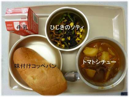 トマトシチューは,見た目はビーフシチューのような色をしていましたが,口に入れるとトマトのすっぱさが広がっておいしかったです。