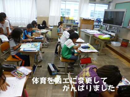 5時間目,雨がきつくなってきて運動場での体育ができなくなりました。そのため,授業時間を変更して「図工」や「家庭科」をがんばりました。