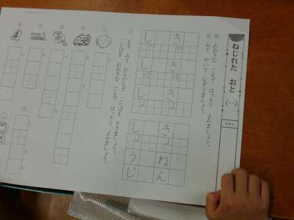 「しゃしゅしょ」「きゃきゅきょ」「・・・」など,ねじれた音の学習です。
