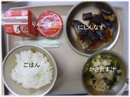 「ごはん」「かきたま汁」「にしんなす」