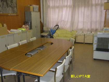 これまでPTA室については一昨年の北校舎耐震補強工事前は北校舎3階の空き教室を利用していただいていました。耐震補強工事終了後は,南校舎3階の空き教室に移動してもらいました。いずれも学校事情で,職員室から遠く,移動や物の運搬に不便な3階を利用していただいていましたが,この度南校舎1階の理科室隣の部屋(元相談室)に再度引っ越ししていただきました。いままでのPTA室に比べたら,狭くなりましたが,希望されていた1階になり職員室との連絡も便利になりました。