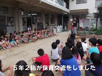 先週の5年1組に続いて,今日は5年2組の子どもたちが中山保育園におじゃまをし,「保育交流」をしました。