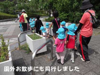 室内遊びや園外お散歩など,園児たちと楽しく交流しました。とても充実した体験学習になりました。