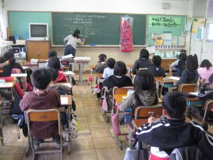 この日は、4−1が学級閉鎖でお休みのため、田村先生が授業をしてくださいました。