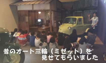 展示場には,昭和初期の「オート三輪(ミゼット)」など,子どもたちが見たことのないような自動車がいっぱい展示されていました。