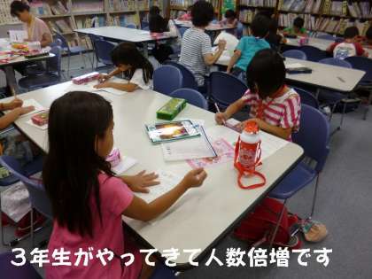 6時間目終了後,3年生がどっとやってきて,急ににぎやかになりました。続いて6年生もやってきた頃は,2年生が下校し始めていたので,そんなにテーブルが混むことはなかったです。