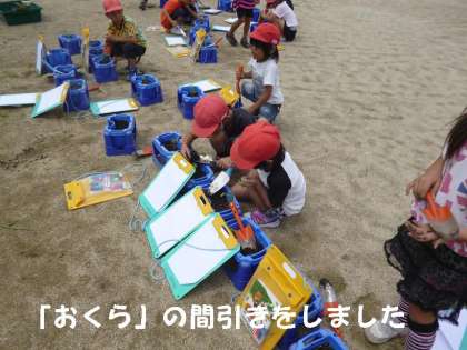 これから,自分の「おくら」の鉢,そして,畑の「サツマイモ」「おくら」にも水やりをしなければなりません。畑の水やりは,当番活動になります。がんばって育ててほしいです。