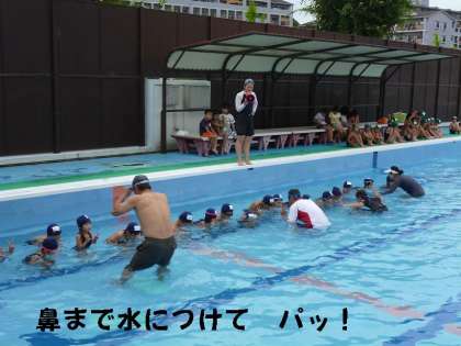 顔を水につけて「ぱっ!」と息を吐く練習を何度も繰り返していました。