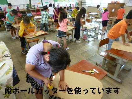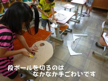 今日は,段ボールに描いた下絵を切り抜く活動をしました。描いたり,ぬったりすることは,細かい小さなものでもできますが,切りぬくとなると,細かい小さなものは,難しいものです。子どもたちは,予想以上に難しい切り抜きに苦労していました。