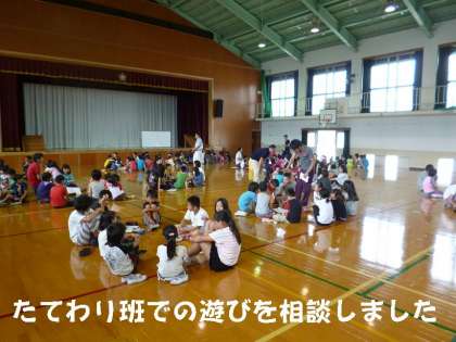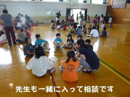 大変蒸し暑い体育館の中でしたが,子どもたちはみんなで楽しく話し合っていました。