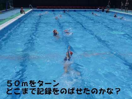 しかし,水の中は気持ちいいです。今日は,泳力ごとに分かれて練習をしていました。50m以上,何度もターンして泳ぎつづけ,自分の記録をのばしている子どもたちもいました。