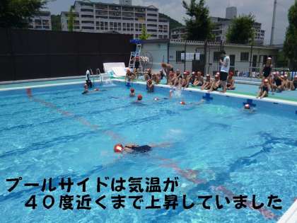 昼前のプールサイドの気温は,何と40度!照り返しが強く,気温もうなぎ上りに上昇していました。