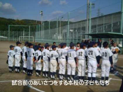 昨日11月15日(日)に石田仮設グランドで醍醐10校区の少年野球大会の開会式がありました。本校の子どもたちのチーム「池田ファイターズ」も参加し,開会式後の第一試合にのぞみました。