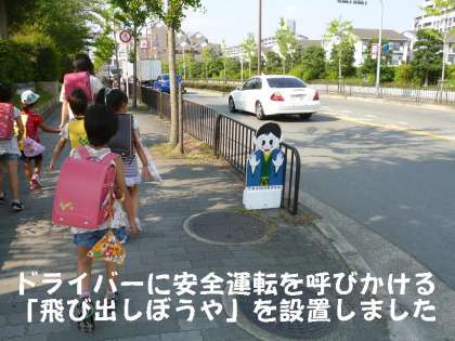 子どもたちが,交通ルールをしっかり守って,そして,「飛び出しぼうやと飛び出しガール」の看板で,運転手さんが注意していただくことにより,交通事故防止につながればうれしいです。