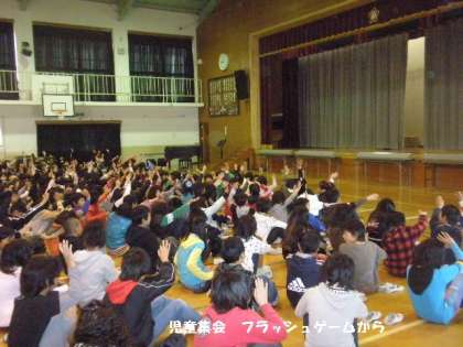 1校時に全校児童集会がありました。計画委員さんから人権月間の取組についての話があり,その後集会委員さんのリードで「フラッシュゲーム」をしました。