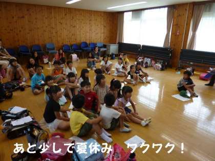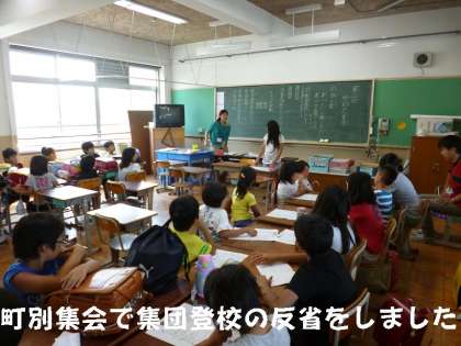 これまでの集団登校の反省,そして,夏休みに向けて「学校のきまり」「夏休みのくらし」の確認をしました。