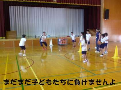 体力では勝てないけれど,技術ではまだまだ負けないと,先生も一緒にボールを追っていました。