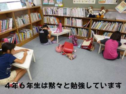 その後図書室では,4年生と6年生が座卓を離して黙々と宿題に取り組んでいました。