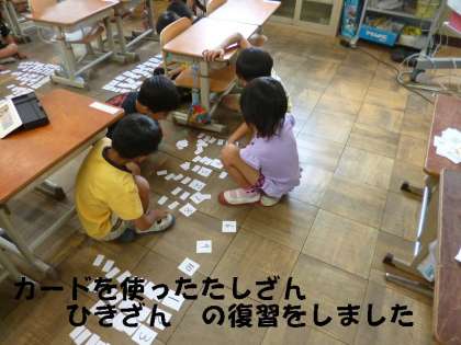今日の算数は,カードを使ってたしざん・ひきざんの復習をしました。
