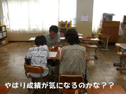 おうちから子どもと一緒に来られる保護者の方,お仕事の途中に無理して来ていただいている保護者方,また,兄弟・姉妹で時間をずらせて長時間懇談していただいている保護者の方など様々ですが,いずれにしても暑い中,ご来校いただいています。