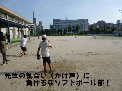 ソフトボール部は,いつも先生の声が一番大きく響いています。それにつられて子どもたちも意欲的に練習に参加しています。