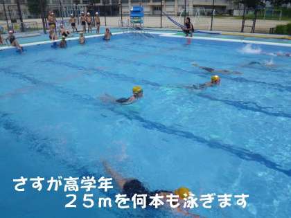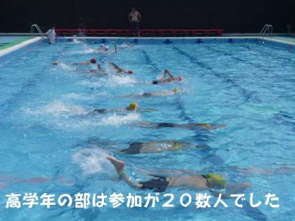 低学年の部と高学年の部の時間をまちがって,午後から来た1年生がいました。指導内容や水位の関係もありますので,一緒に入ることができません。時間をまちがわないように注意してください。
