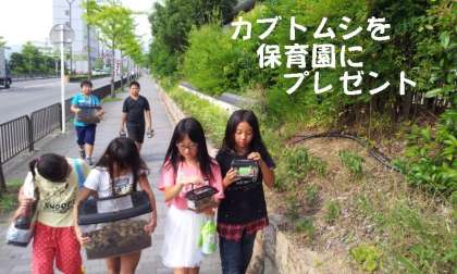 昨日,e-na(えーな)プロジェクト(ごみ減量大作戦)で育てていた「カブトムシ」を近隣の保育園にプレゼントするために持って行きました。