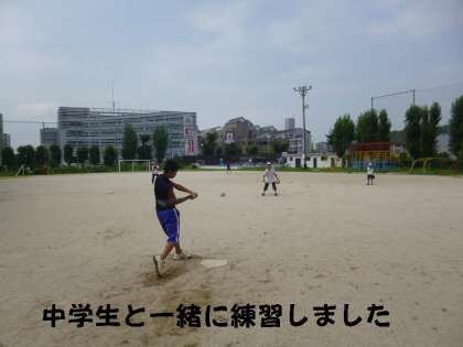 18日(日)に実施される,山科・醍醐地域少年補導委員会主催の「小中ソフトボール大会」に向けて,中学生(卒業生)と一緒に合同練習をしました。