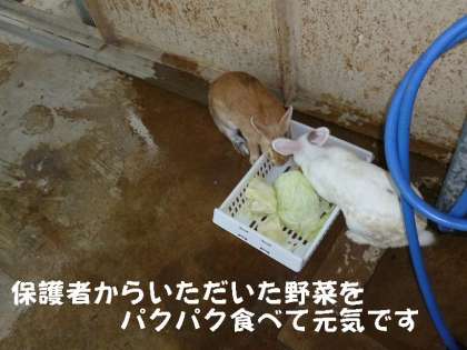 学校閉鎖日中で,子どもたちの姿は見られませんが,飼育小屋のうさぎたちは元気です。