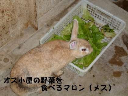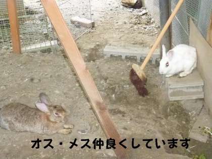 お盆明けから,うさぎ小屋のオス・メスの境のあみを取ってやりました。