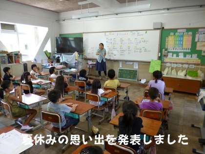 2年1組では,子どもたちとともに,先生も夏休みの思い出を話していました。