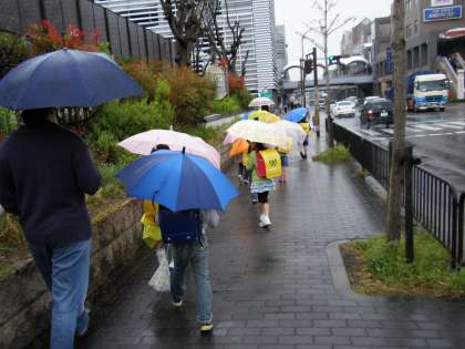 かさをさしての下校になり、ちょっと心配しましたが、何も言わなくても一列になり安全に気をつけて下校できました。