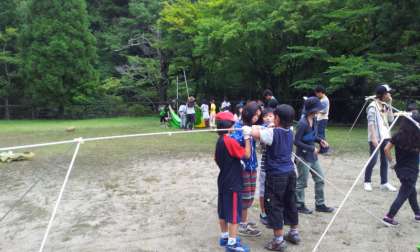 スタッフの方や先生に手伝ってもらいながらも,班で協力して声をかけ合いながら,