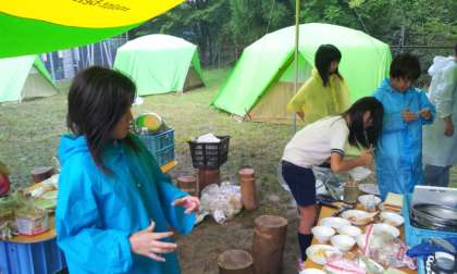 八桝小学校での朝食です。