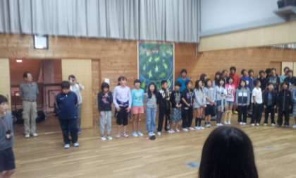 疲れていているにもかかわらず笑顔で元気に校歌を歌っていました。