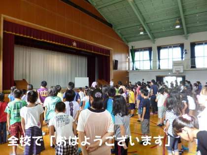 昨日は,5年生が代休日だったので,本日9月の朝会をしました。